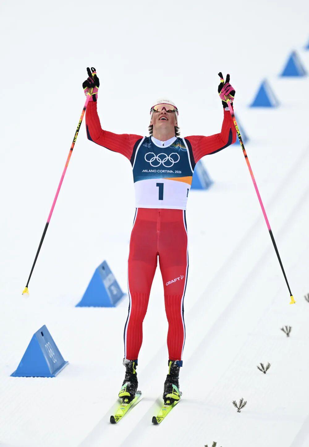 2月21日,挪威选手克莱博庆祝夺冠。新华社记者 贺灿铃 摄